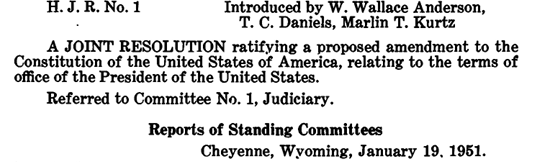 - The Wyoming legislature voted to ratify the 22nd Amendment on February 12, 1951.