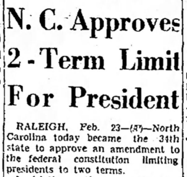 - There are no relevant cases in North Carolina that analyze the requirements of the 22nd Amendment.