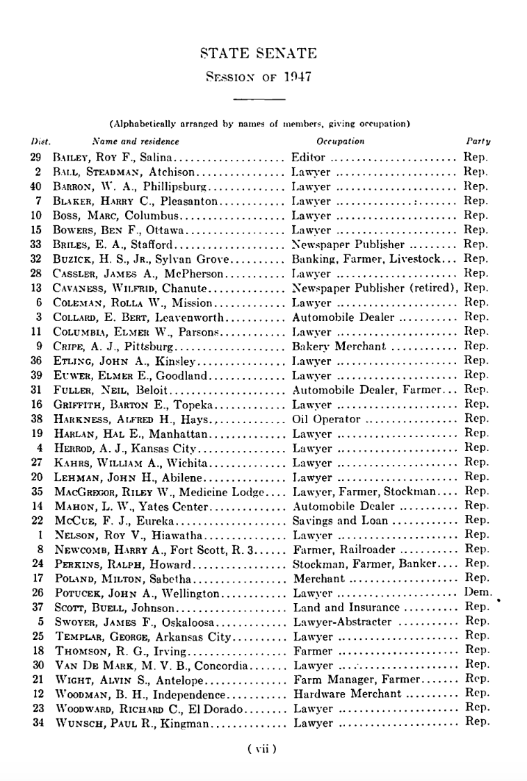 - The Senate concurred in the resolution on April 16, 1947, with a bipartisan vote of 27 to 5. Democratic Senator Clement Zablocki joined his Republican colleagues in supporting the measure. One senator was absent and did not vote.