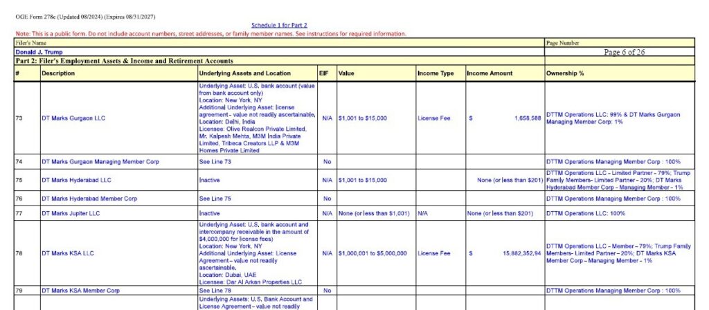 While the Trump Organization surely raked in tens of millions of dollars from foreign deals, including multiple new ones, during his first year back in office, Trump won’t have to file a financial disclosure reporting this 2025 revenue until later this year.